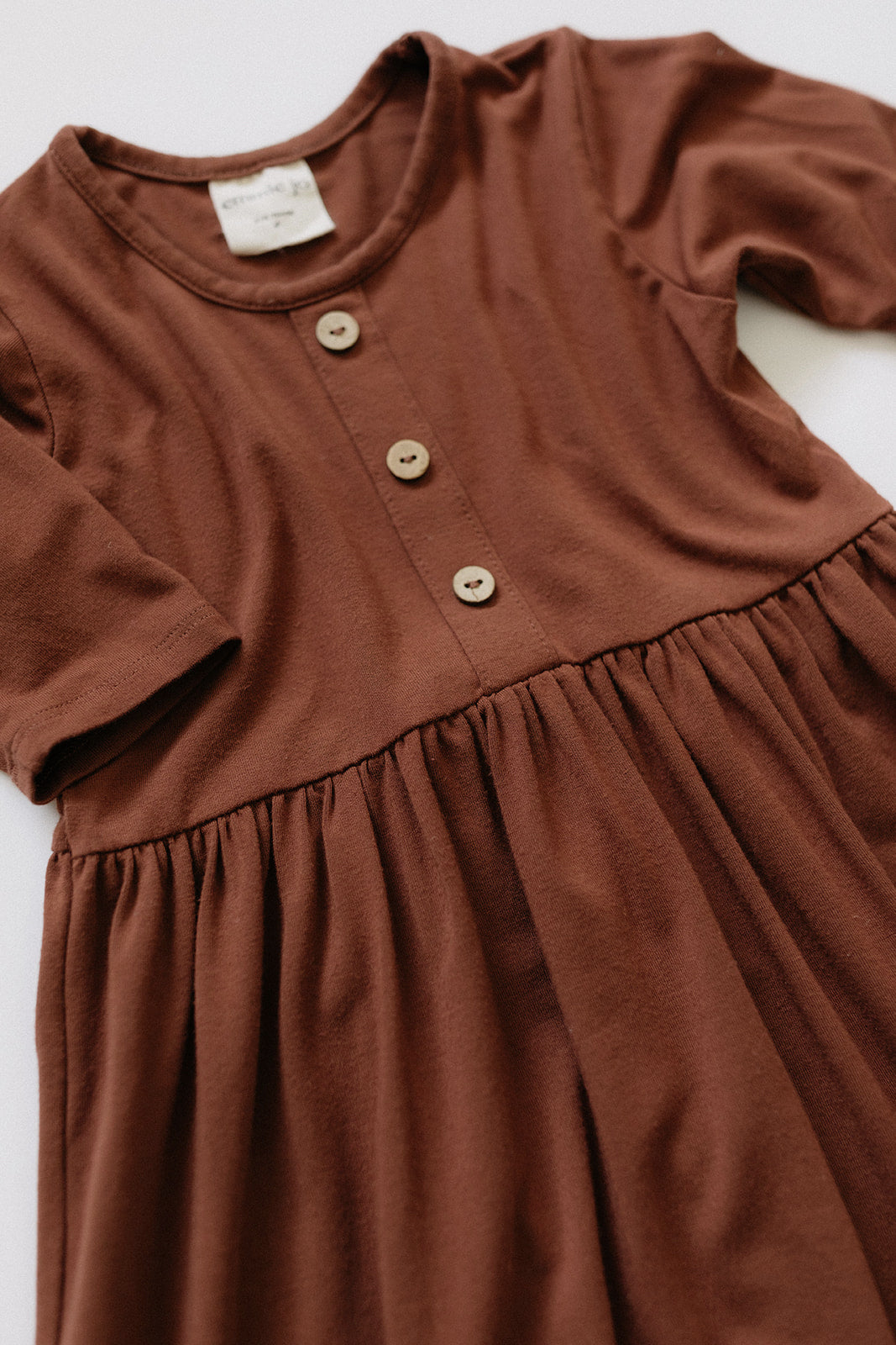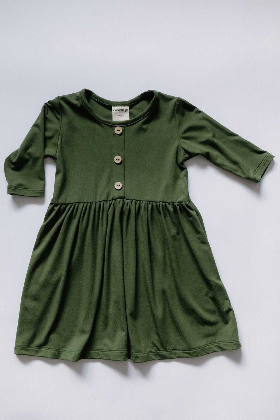 New for this season, our 3/4-Sleeve Peplum Dress can easily be dressed up or down turning it into the perfect staple in your little girl's wardrobe. Made from our signature bamboo jersey fabric, it is comfortable, breathable and ideal for dancing and twirling. Features a faux 3-button placket, 3/4 sleeves and a gathered skirt.